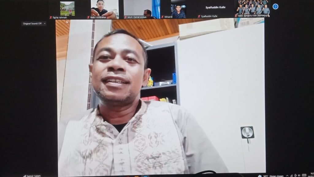 Koordinator Divisi Penanganan Pelanggaran Bawaslu Sulsel saat memberikan materi pada Rakor Penanganan Pelanggaran\n\n\n\nMakassar – Ketua Badan Pengawas Pemilihan Umum Kabupaten Pangkajene dan Kepulauan mengikuti Rapat Koordinasi rencana aksi Divisi Penanganan Pelanggaran Bawaslu Se-Sulawesi Selatan yang digelar secara virtual (Jum’at, 04/02/2022).