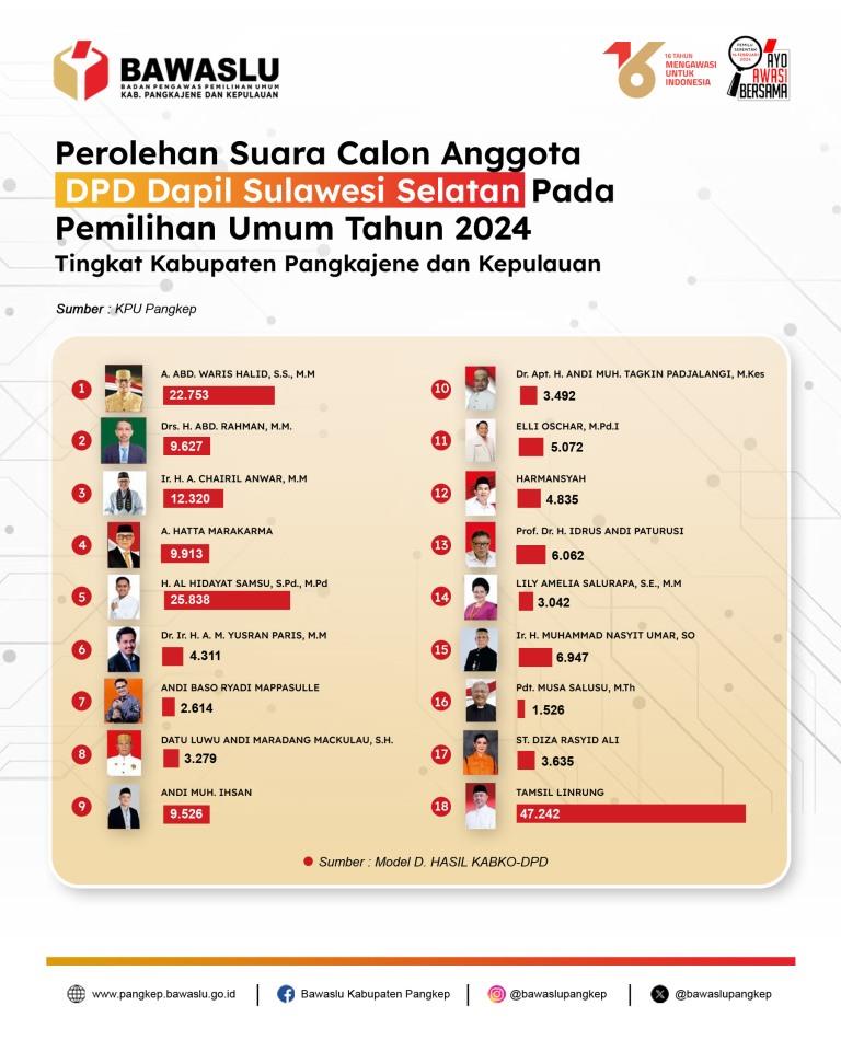 [INFOGRAFIS] REKAPITULASI PEROLEHAN SUARA DPD WILAYAH PROVINSI SULSEL DI TINGKAT KABUPATEN PANGKEP