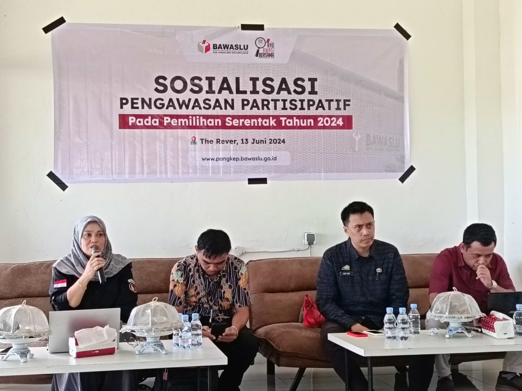 \n\n\n\nkegiatan sosialisasi pengawasan partisipatif Bawaslu Kabupaten Pangkajene dan Kepulauan dilaksanakan di rever for you Kecamatan Minasatene dengan menghadirkan narasumber dari Kesbangpol, DPMD dan BPD (Kamis, 13/06/2024).